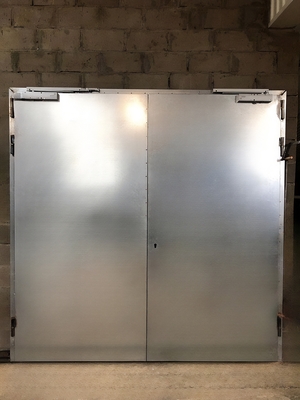 Нормы пожарной безопасности к КТП регламентируют монтаж дверей из негорючих материалов, выдерживающих прямое воздействие огня и высокой температуры в течение 30 или более минут. Поэтому для производства дверей применяется холоднокатаная сталь толщиной от 1,4 мм и теплоизоляция из каменной ваты.